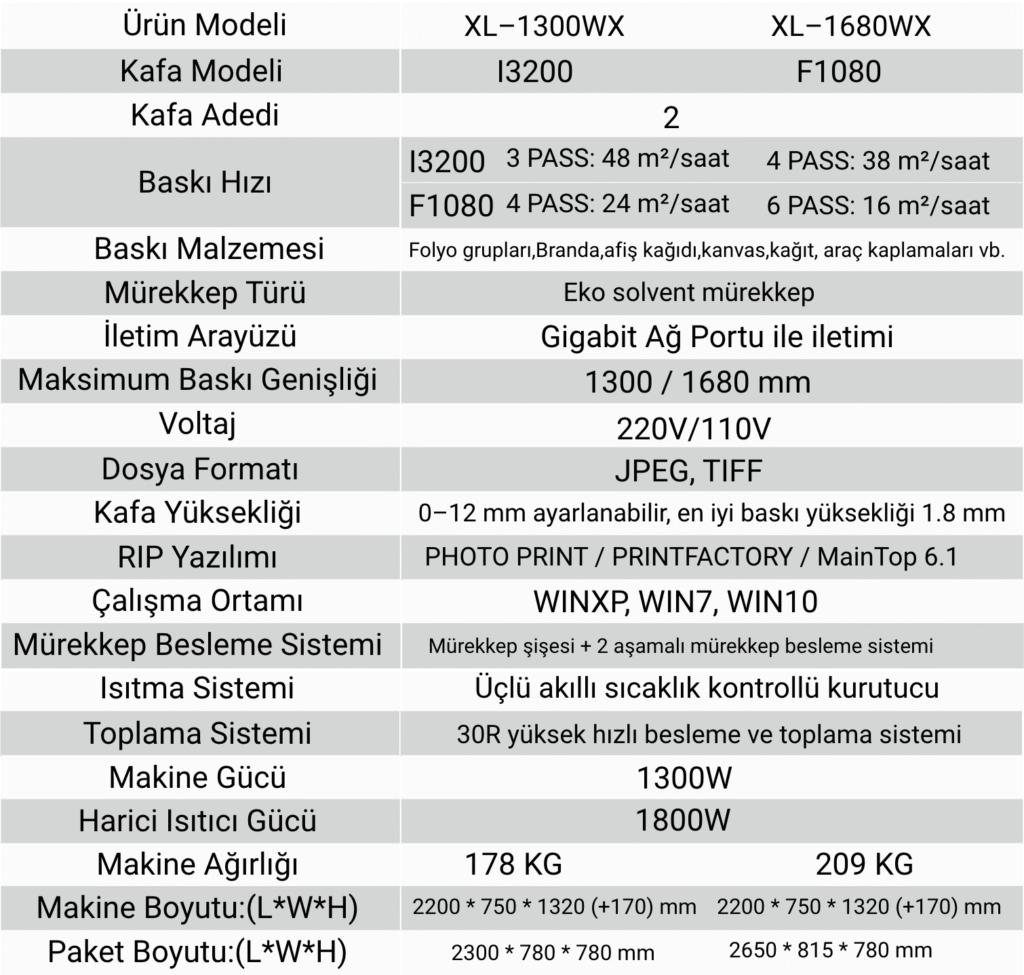 Endüstriyel Epson i3200 baskı kafasına sahip bu süblimasyon dijital baskı makinesi, çift taraflı şeffaf bayraklar, renkli afişler, saten kumaşlar, gümüş kazımalı kumaşlar, süblimasyon kağıtları ve benzeri birçok medyada yüksek kalitede ve detaylı baskılar sağlar.